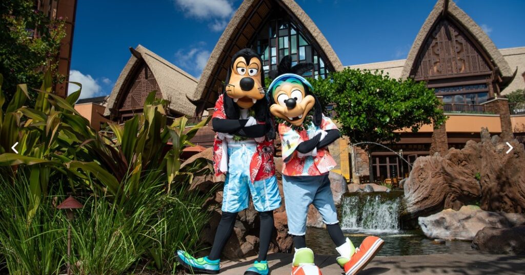 アウラニ滞在の醍醐味の一つは、ディズニーの仲間たちに会えることです。他のパークでは長蛇の列になることも多いですが、アウラニではゆったりとした雰囲気の中でグリーティングを楽しめます。ミッキーやミニーはもちろん、ドナルド、グーフィー、スティッチなど、お馴染みのキャラクターが、ここでしか見られないハワイアンスタイルの衣装でゲストを迎えてくれます。
