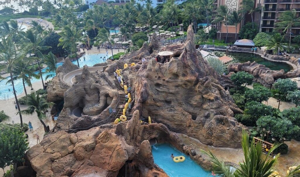 流れるプールであるワイコロヘ・ストリームは、浮き輪に乗ってゆったりと景色を楽しみながら流れることができます。また、チューブストーン・カールは、リゾートのシンボル的な存在である岩山を通り抜けるスライダーで、大人でも十分楽しめる迫力があります。プールサイドでは、カバナのレンタルも可能で、家族だけのプライベートな空間で優雅に過ごすこともできます。
