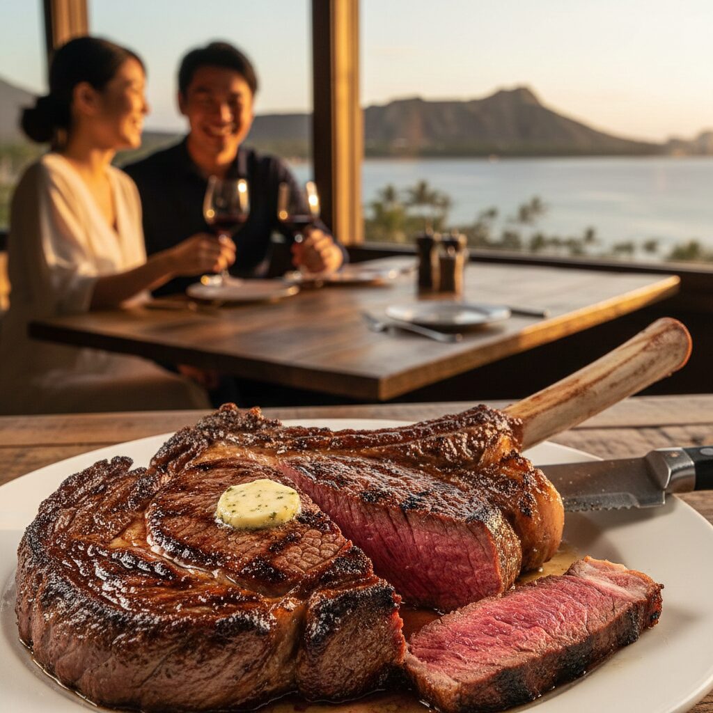 骨ごとお肉を焼くことで、骨髄からの旨味が肉に染み渡り、通常のリブアイよりも濃厚でジューシーな味わいになると言われています。ここでは、オアフ島でトマホークを食べるなら絶対に外せない名店を厳選し、それぞれの個性を深掘りしてご紹介します。
